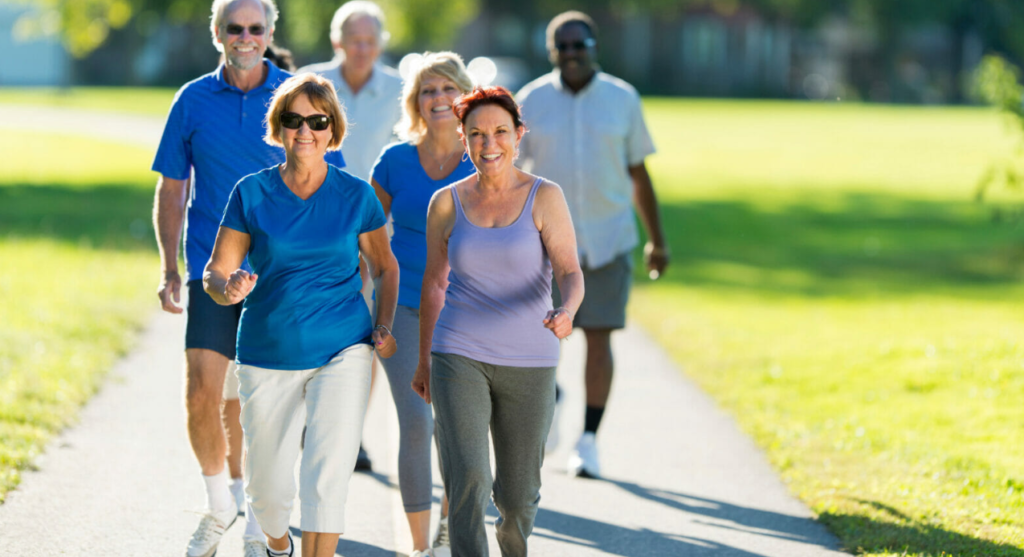 Older adult walking in a park, staying active and healthy